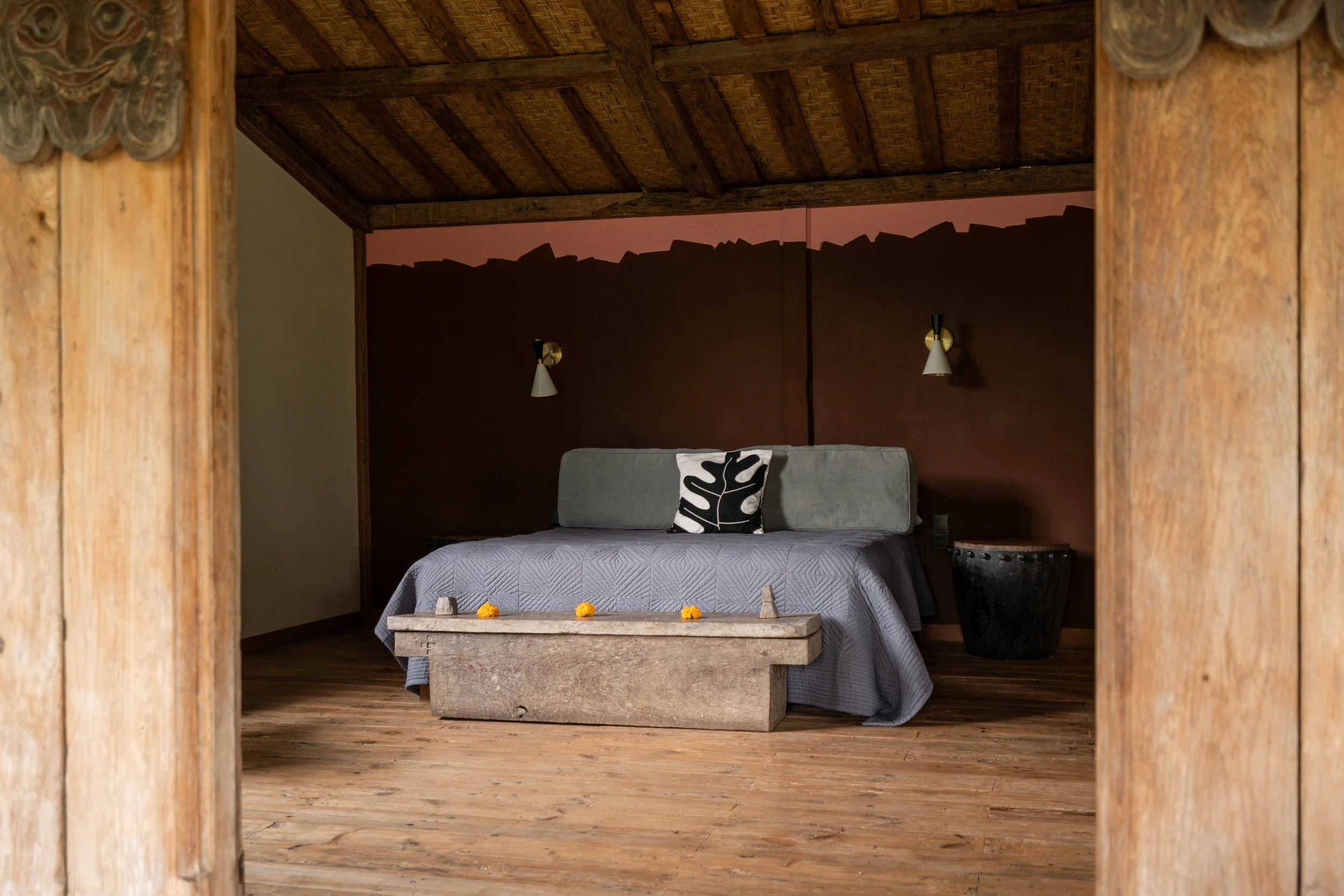 Rumah Erlangga – A Deluxe Village House with 1 bedroom, 1 bathroom and a private terrace. This house is suitable for a single, couple, or twin share nestled alongside our herbal gardens.