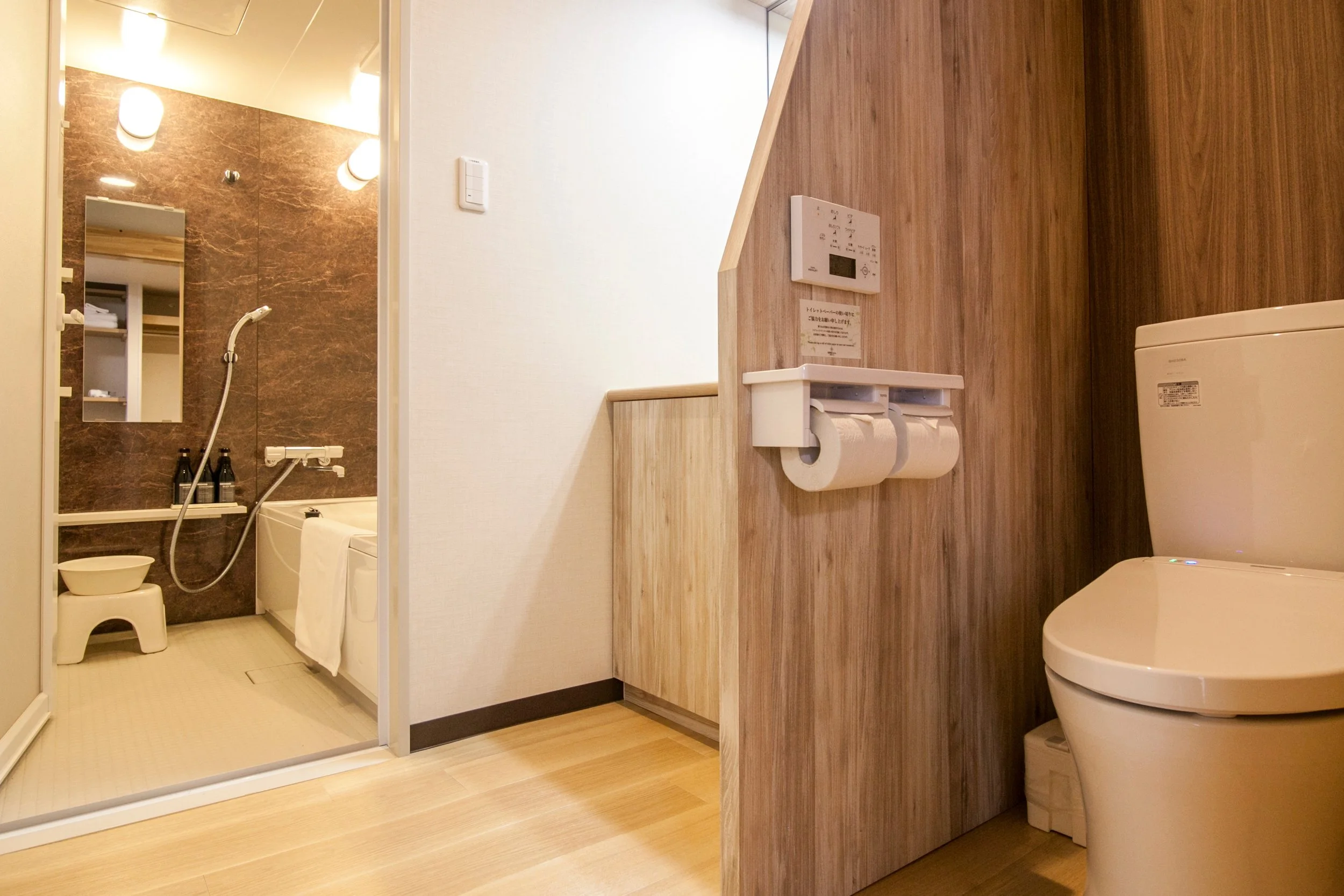 All the rooms are shared rooms. We have only few single rooms. Beds are Japanese style on the floor. The room is large and is equipped with air-conditioning and a kotatsu heater and Bathroom are all shared. We could provide private bathroom too if you would like that. Please book that in advance. The building is made of timber and allows you to feel that you are really staying in a temple.
